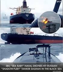 Le 10 décembre, un drone naval de type « Sea Baby » du SBU s’en est pris au pétrolier Dashan dans le sud de la mer Noire aux environs de la Crimée. Il naviguait sous les couleurs des Comores et devait rejoindre de terminal pétrolier de Novorossiysk. Le SBU a déclaré qu’il s’agissait d’une opération combinée entre le 13ème directorat du contre-espionnage militaire et la Marine ukrainienne.