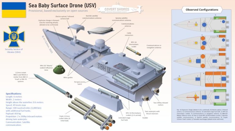 Le Sea Baby est exploité par le SBU (Service de sécurité d’Ukraine). Bien que de taille réduite, sa conception bimoteur est légèrement plus imposante que celle de la série Magura de la HUR (Direction principale du renseignement.) Il peut ainsi transporter une charge utile plus importante et plus diversifiée.