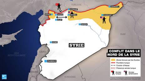 Les Kurdes syriens n’ont pas lutté contre le régime de Bachar el-Assad depuis le printemps arabe de 2011. Les forces régulières syriennes s’étaient retirées de presque la totalité de l’est de l’Euphrate pour consacrer leurs effectifs à combattre l’insurrection dans le reste du pays. Lors de l’apparition de Daech, la branche militaire kurde syrienne du PYD a vaillamment repoussé les assauts des salafistes-jihadistes. Les Américains leur ont apporté leur appui en créant puis en soutenant les Forces démocratiques syriennes (FDS) qui englobaient les unités de protection du peuple -YPG- (et sa version féminine les Unités de protection de la femme -YPJ-) et des tribus arabes locales (celles qui font défection aujourd’hui.)