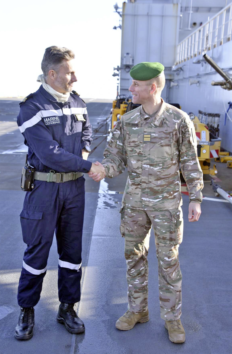 — Le PHA est un bateau interarmées, interarmisé, codésigné par la Marine et l’armée de Terre, c’est pour cela que ça fonctionne bien. Comment fonctionnez-vous avec votre camarade du 2e REI, tout en sachant que c’est bien vous le chef du navire et de l’opération amphibie ? Et que l’amphibie à terre, c’est quand même une grande partie de ses troupes, alors qu’une faible partie des vôtres ont effectivement débarqué ?