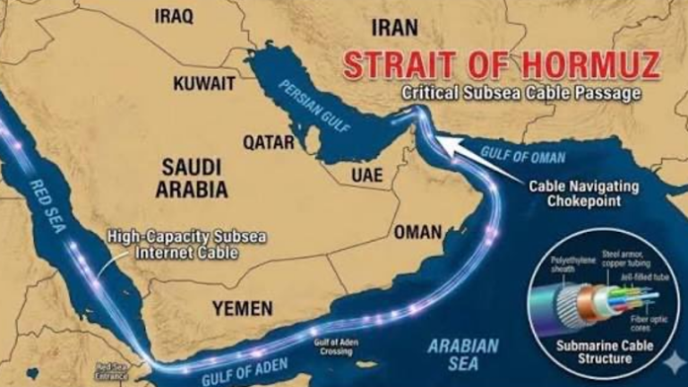Au moins sept câbles sous-marins majeurs traversent le détroit d’Ormuz par lesquels transitent plus de 97 % du trafic internet mondial, notamment pour le commerce électronique, les services cloud et les communications.